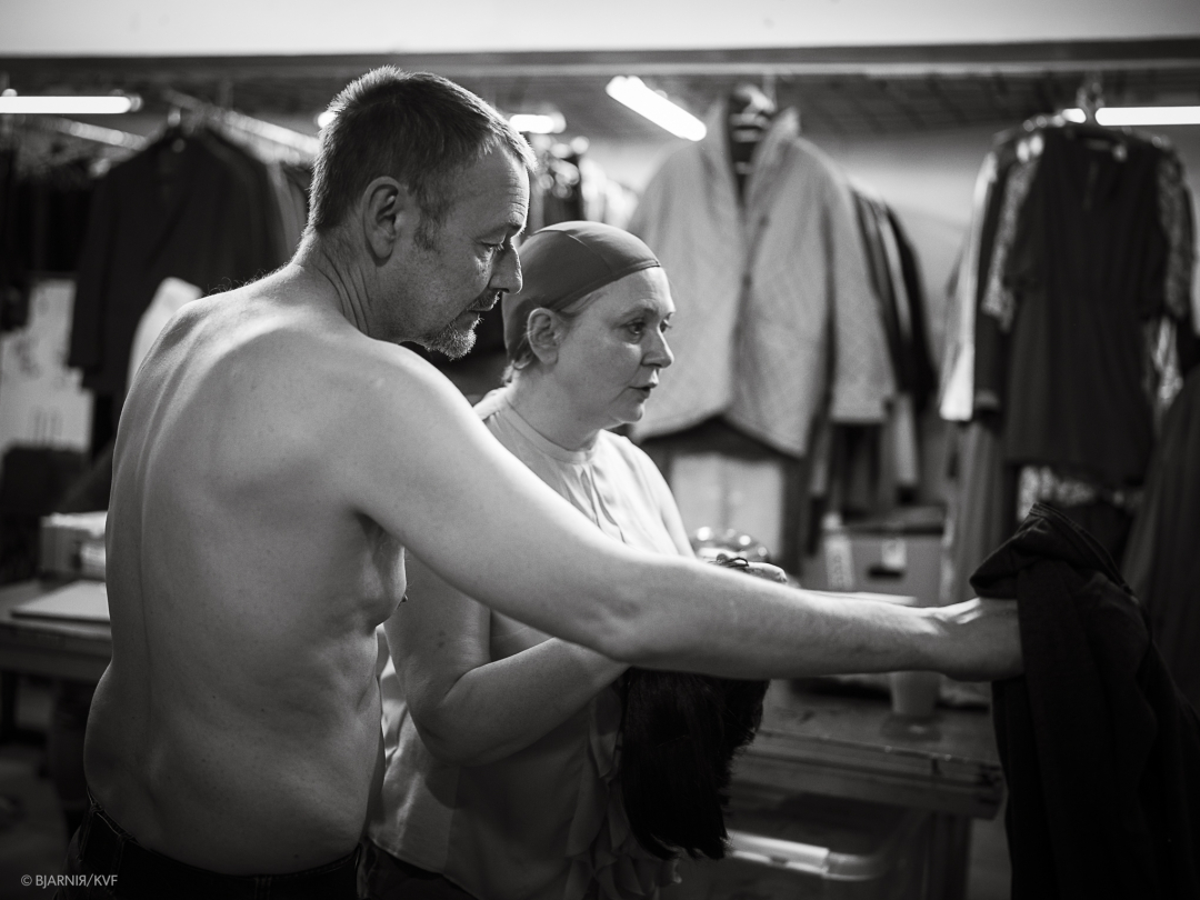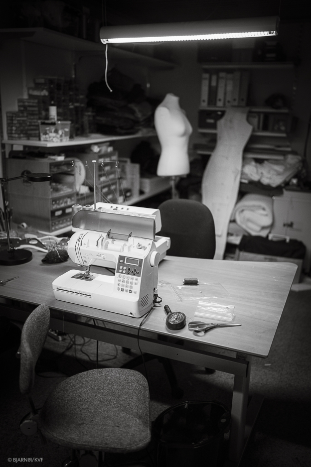 Ummyndanin byrjar við seymiborðið og búnunum, ið sjónleikararnir skulu í.