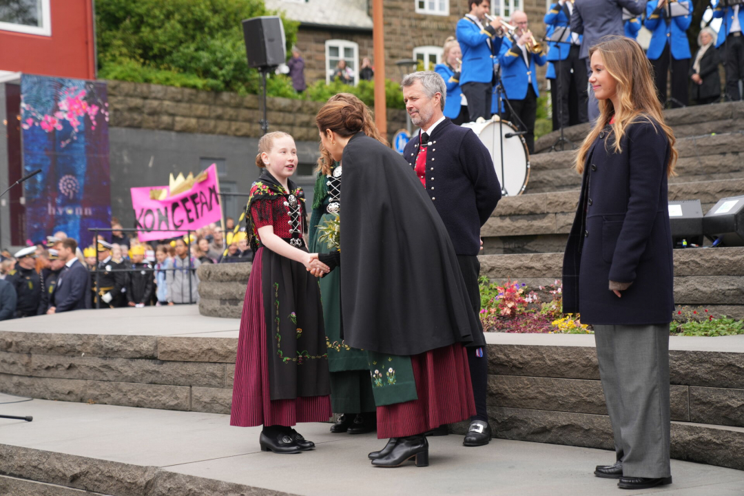Í myndum: Nógv fólk heilsaðu upp á kongshjúnini á trappuni