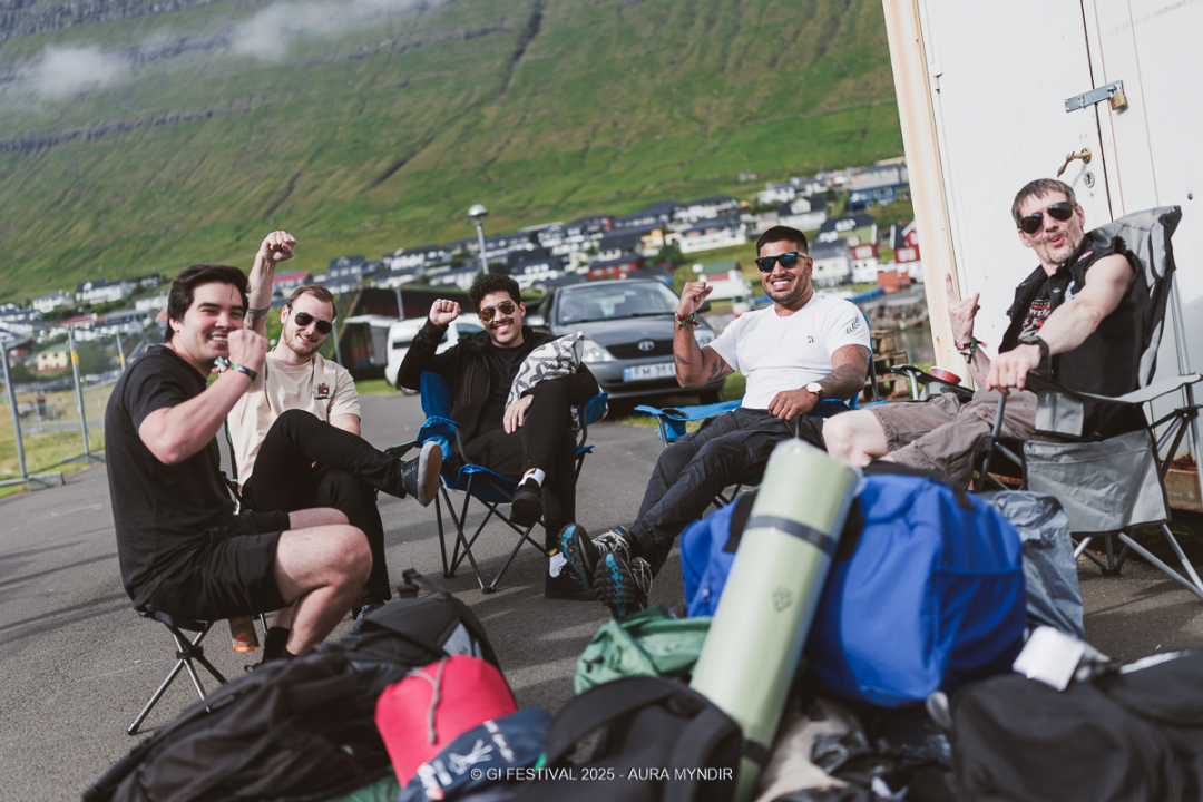 Spentir tjaldarar sita og bíða eftir at sleppa inn á tjaldingarøkið á G!, sum seinastu mongu árini hevur verið í Norðragøtu. (Mynd: Auramyndir)