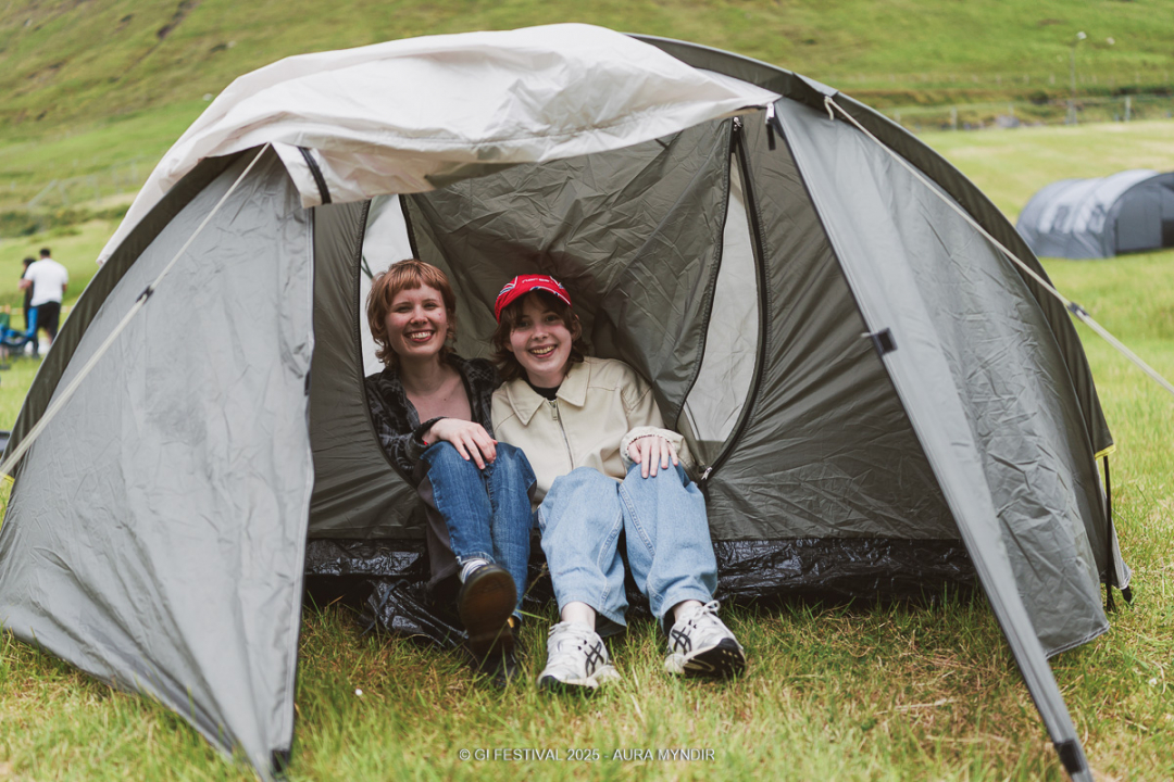 Tað sær út til, at tað er umráðandi at sita væl, um mann skal tjalda í fýra dagar á G! (Mynd: Auramyndir)