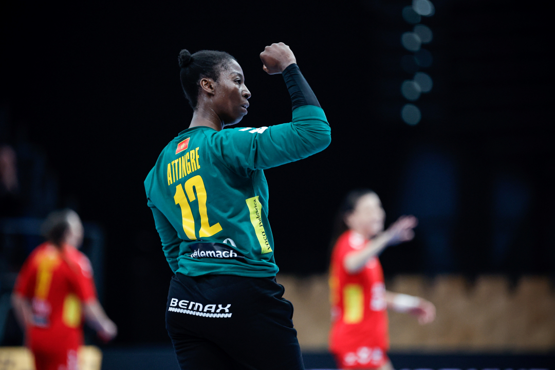 "Mín sorg er ein kvinna," yrkti Janus Djurhuus í 1902, og tað rakti so sanniliga eisini føroysku hondbóltskvinnurnar móti Montenegro. Gaman í, so er 36 ára gamla Armelle Kelly Attingre í málinum hjá Montenegro ikki "marmorbleik", eins og Janus Djuurhus yrkir, men hon hevur staðið á brimbørdum strondum, tí hon er upprunaliga ættað úr Fílabeinsstrondini og hevur áður umboðað Frakland. Hon hevur verið við at vinna franska meistaraheitið, og ikki minni enn tvær ferðir er hon kosin besti málverji í Fraklandi. (Mynd: Jure Erzen / kolektiff)