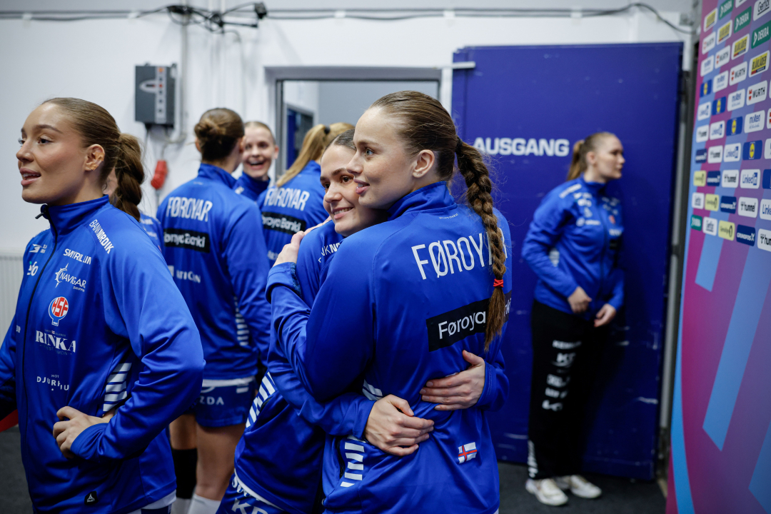 Hagtøl eru ofta rættiliga mogin og turrislig at fáast við, men tey lúgva sjáldan, og tað gjørdi tey heldur ikki, tá kvinnulandsliðið í hondbólti skrivaði føroyskal ítróttarsøgu í Trier. Liðið er tað fyrsta føroyska vaksnamannalandsliðið, sum luttekur í einum HM-endaspæli. (Mynd: Jure Erzen / kolektiff)