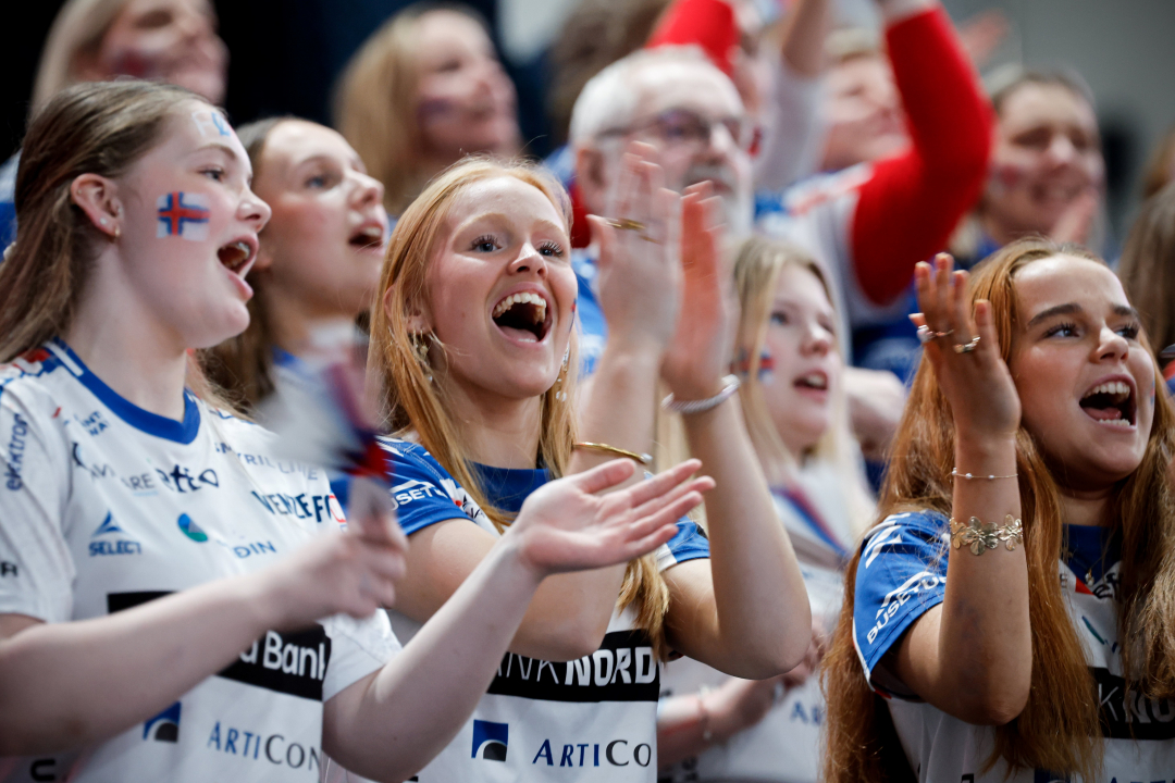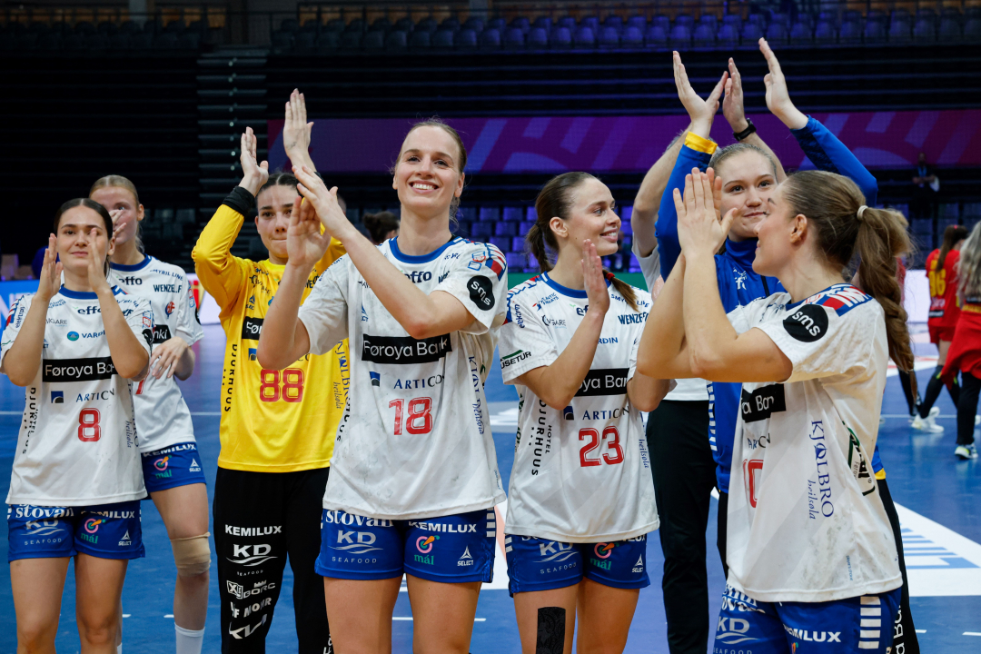 Hóast tapið, so vóru føroysku fjeppararnir væl nøgdir við avrikið hjá hondbóltskvinnunum, sum blivu fagnaðar sum tær stjørnur, ið tær eru. (Mynd: Jure Erzen / kolektiff)
