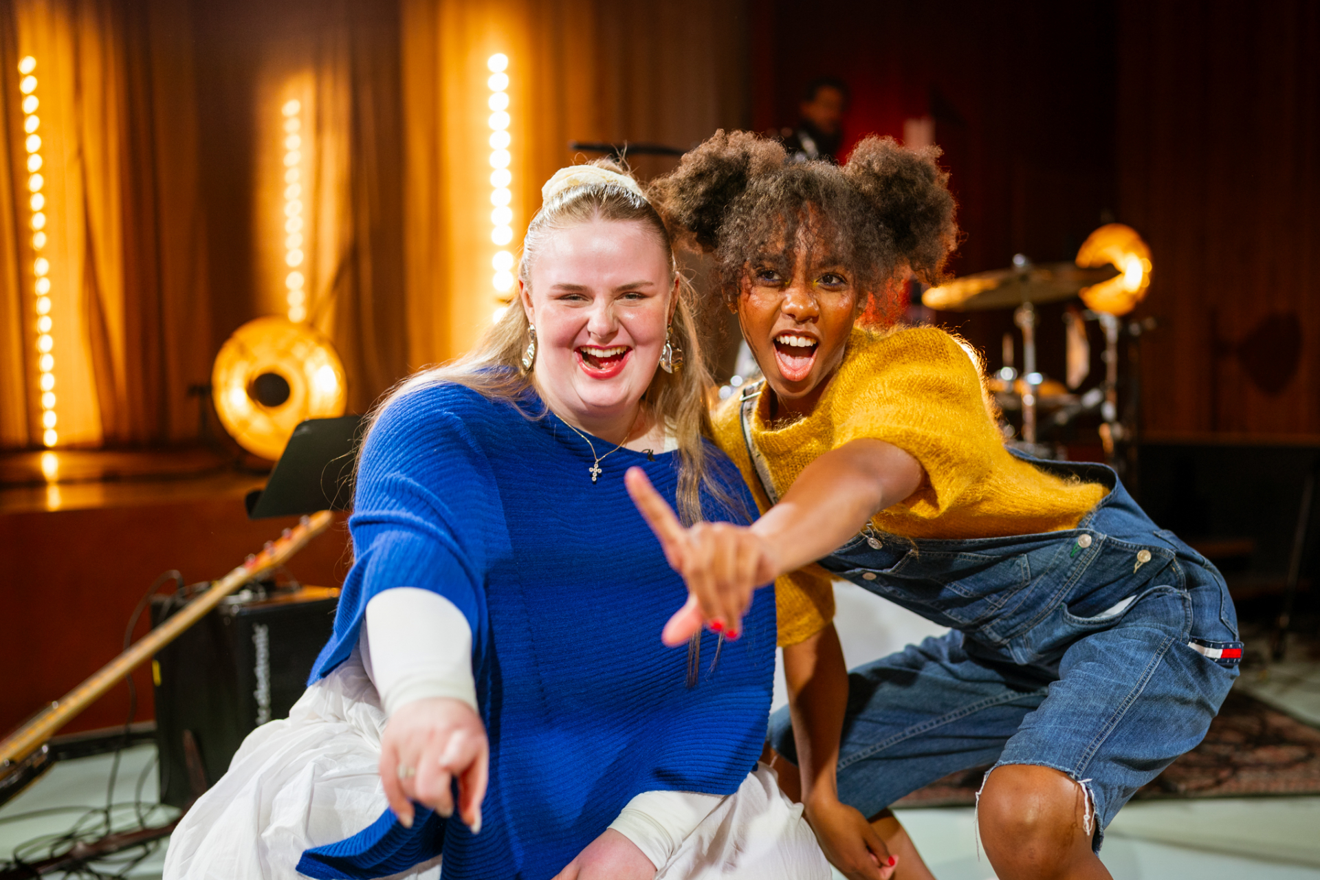 Sophilia trívist væl við at upptraðka, so hon er sera lívlig á pallinum. Hon stórtrívist á pallinum og framman fyri upptøkutólunum. (Mynd: Bjarni Árting Rubeksen)