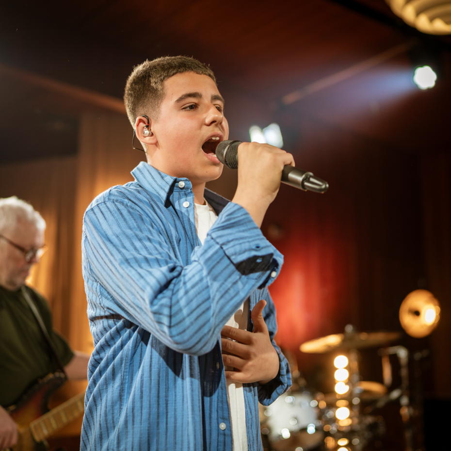 Bjarki er í roynd og veru longu landskendur í Føroyum, tí hann hevur sungið við í jólaleikinum "Jól í Likkudali" og hevur hittað stórt við fleiri sangum úr leikinum. (Mynd: Bjarni Árting Rubeksen)