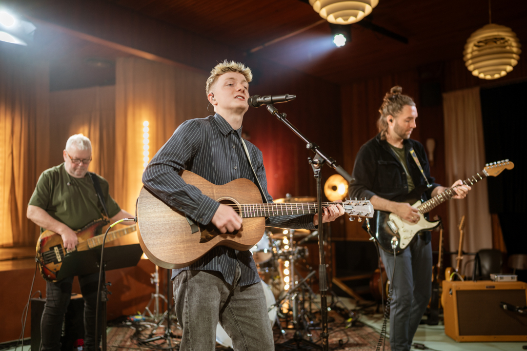 Ein maður, ið veit, hvat skal til, fyri at standa bæði á einum palli og framman fyri einum upptøkutóli og framføra, er Finnur Koba frá kenda bólkinum Páll Finnur Páll. Finnur starvast eisini í Kringvarpinum og hevur saman við Per Zachariassen og Mariu Winther Olsen staðið fyri at fáa sett Hoydalar í verðina. (Mynd: Bjarni Árting Rubeksen)