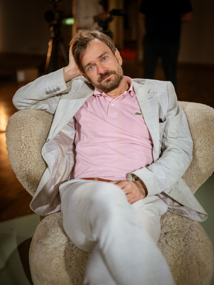 Martin Joensen í einari meira avslappaðari løtu millum upptøkurnar (Mynd: Bjarni Árting Rubeksen)