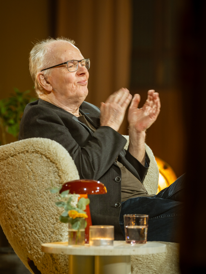 Stjørnan vísir sítt samtykki. Martin Joensen tykist nøgdur við at hoyra sínar klassisku sangir í nýggjum og ungum hami. (Mynd: Bjarni Árting Rubeksen)