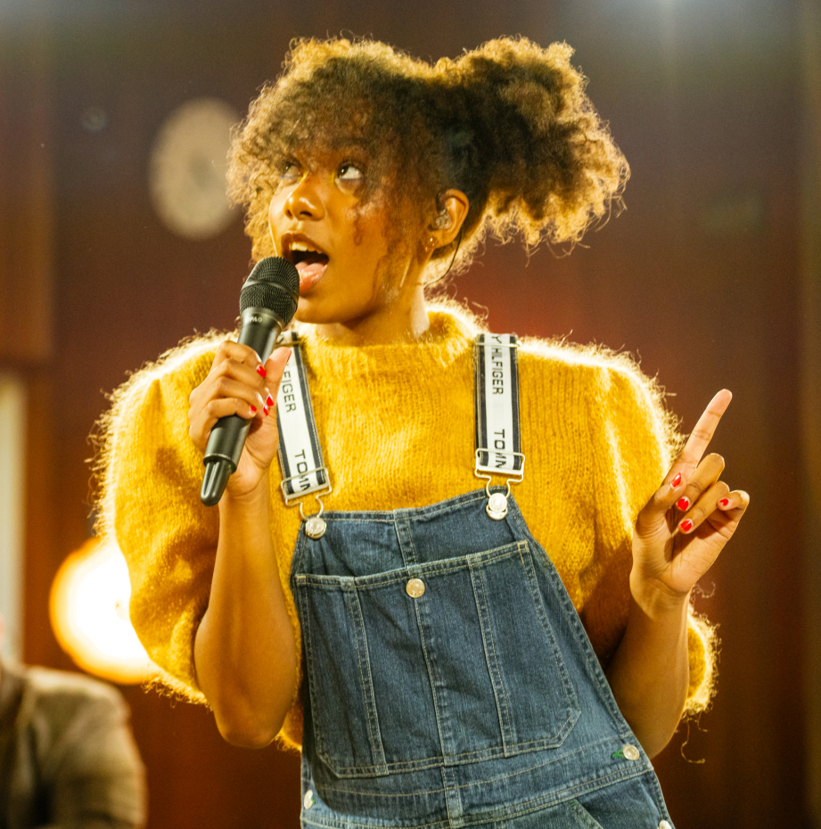 Síðsti spírin, 19 ára gamla Sophilia Wraae Mukisa úr Havn, hevði valt at tulka sangin "Motomani" hjá Martini Joensen, ið Vestmenn upprunaliga innspældu. (Mynd: Bjarni Árting Rubeksen)