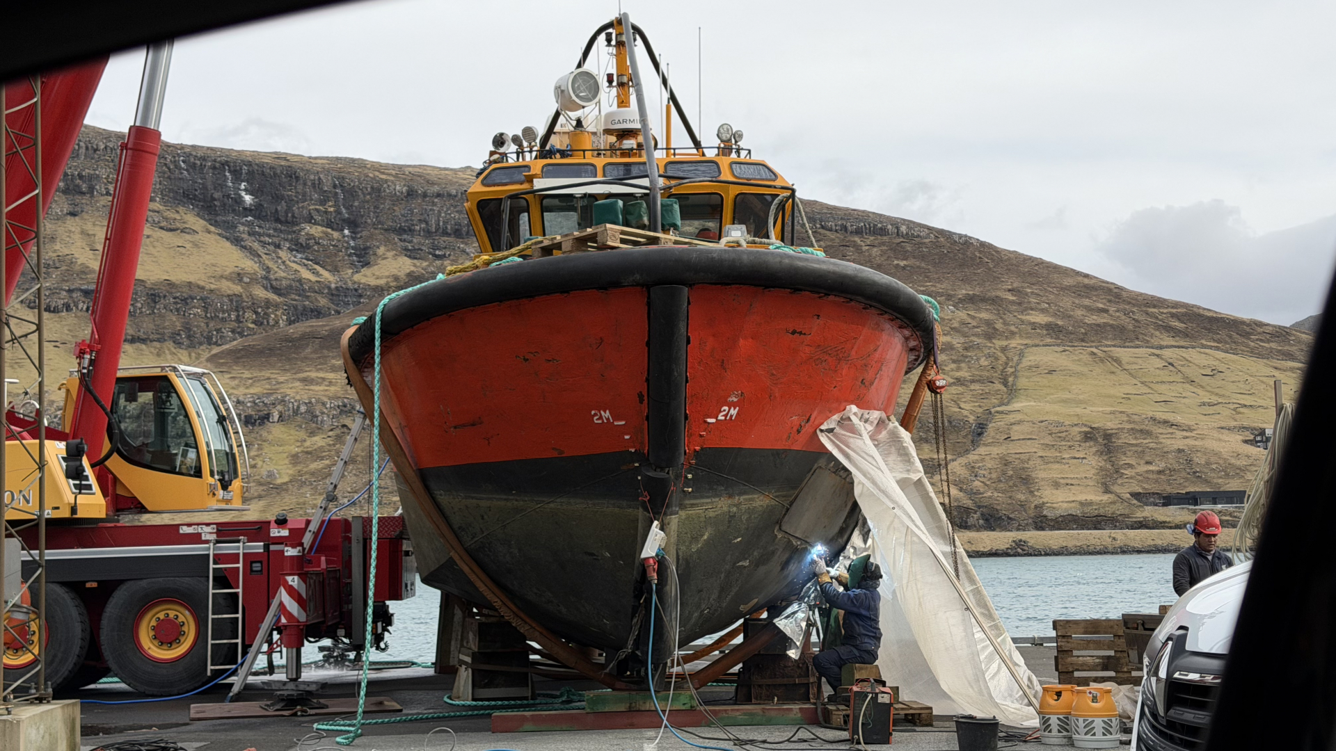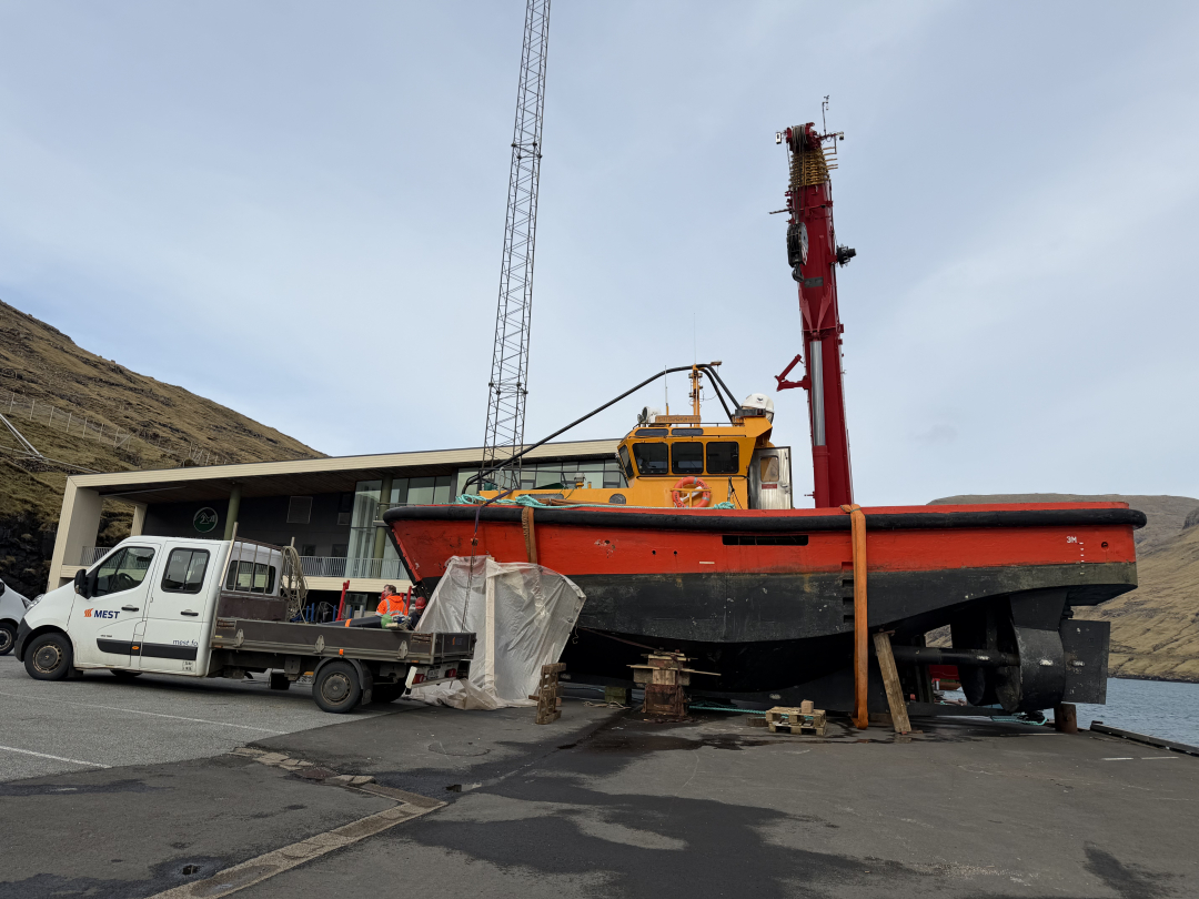 Báturin var í morgun tikin upp á kajina í Sørvági.