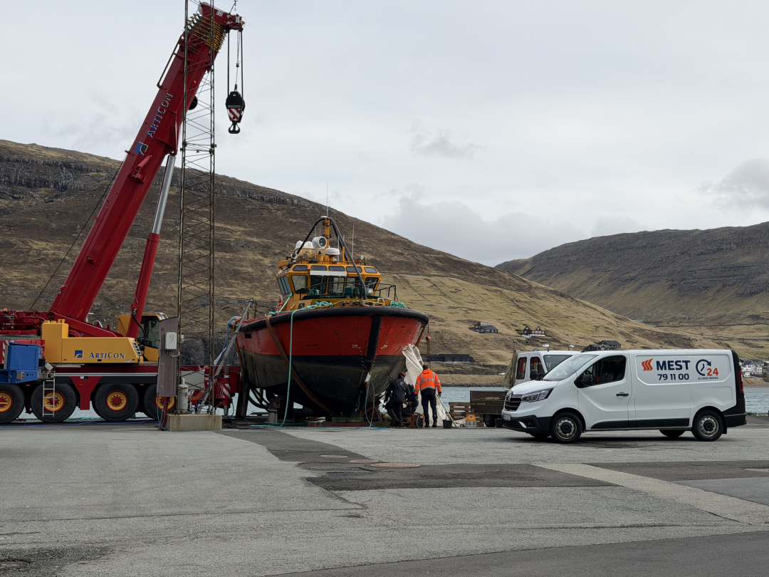 Um hálvgum tólv-tíðina í gjárkvøldið sigldi sleipibáturin hjá skipasmiðjuni Mest, Pressarin, á Skerhólm í Sørvágsfirði, og sendi út neyðarkall