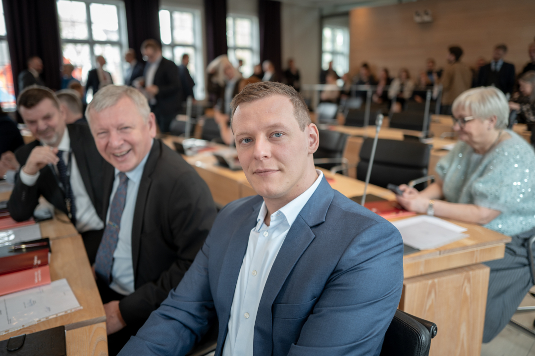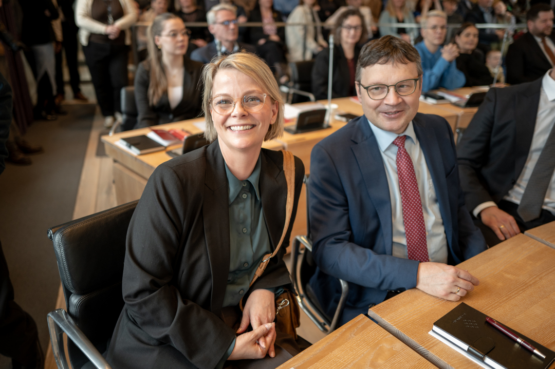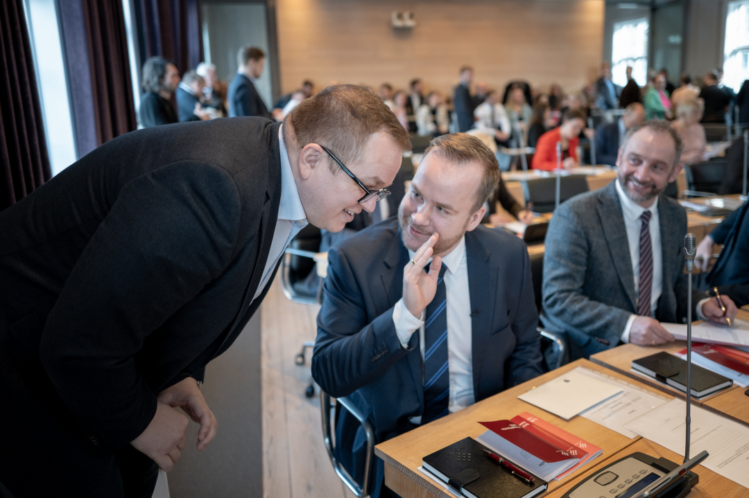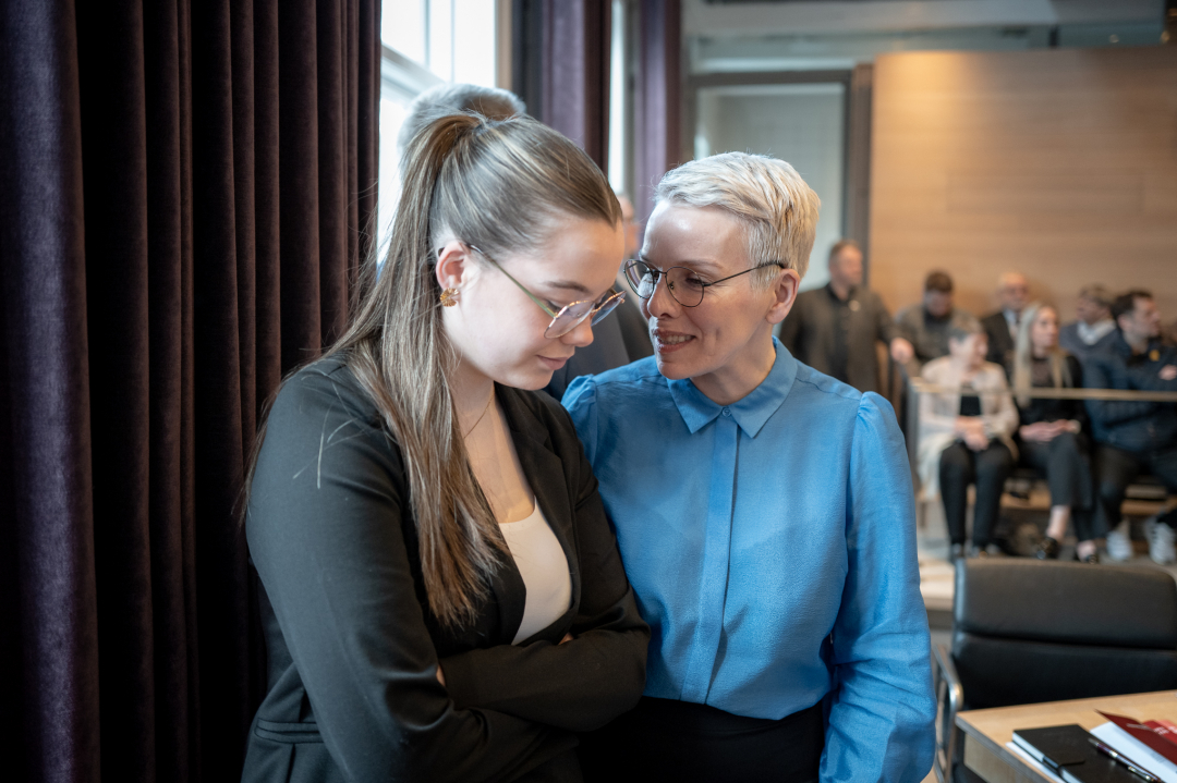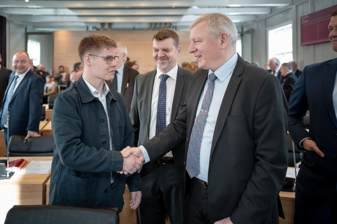 Yngsti løgmaður og yngsti tinglimur. Nýggj andlit og nýtt løgting. Gleði og gleðistár. Myndamaður Kringvarpsins, Bjarni Á. Rubeksen, fangði løtuna