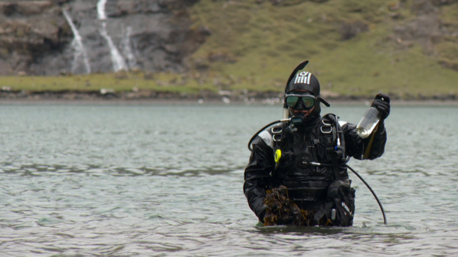Leiting sett í verk úti í Pollinum í Saksun