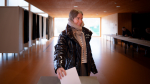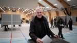 Fólk í Nólsoy velja í felagshúsinum hjá Ungmannafelagnum Royndini í Nólsoy