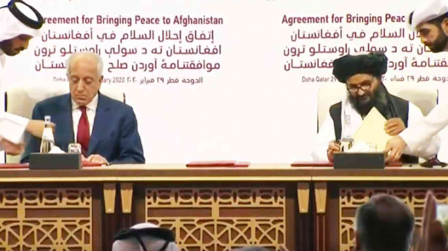 At usa og taliban nú eru komin somikið ásamt um eina friðaravtalu er í sjálvum sær sermerkt, tí í tíðini eftir 11. september í 2001, var tað taliban sum var í kikaranum hjá amerikansku hermegini, tá syndabukkurin eftir álopini á World Trade Centre skuldi finnast. Al Queida yvirgangsfelagsskapurin við Osama Bin Laden á odda stóð handan flogrænara álopini, sum í so stóran mun hevur myndað eftirfylgjandi tíðina. Men Al-Queida og taliban stýrið í Afghanistan stuðlaðu eisini hvør øðrum, og tí var mangan ikki gjørt stórvegis munur á teimum báðum.
