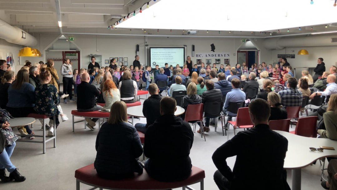 Lærarar, foreldur og næmingar í Hoyvíkar skúla í dag.