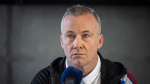Tróndur Arge tosar við spælarar, venjarar og journalistar eftir 2-1 tapið ímóti Kekkia í fyrsta dystinum í HM-undankappingini