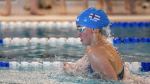 Sára Jógvansdóttir og Mathias Dimon Næs í svimjihøllini.