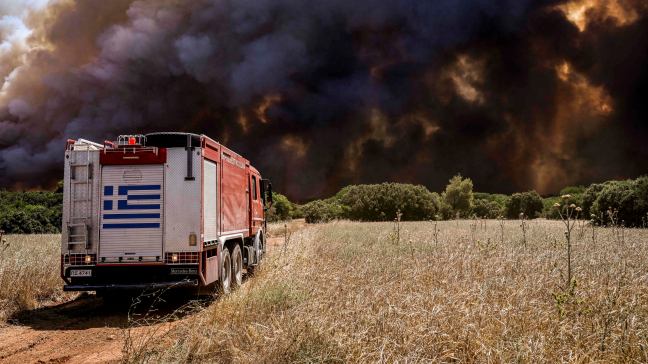 Tey berjast fyri at basa skógareldum og fleiri staðni í Grikkalandi verða fólk í hesi løtu flutt burtur frá vandaøkjum. Økið kring griska høvuðsstaðin, Athen, er rakt av ógvusligum skógareldum og kenda frítíðaroyggin Rhodos er eisini hart rakt. Fleiri ferðaskrivstovur hava gjørt av at steðga allar sølu av ferðum til Rhodos fyribils.