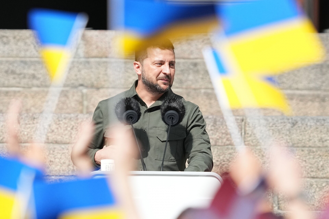 ”Dear people of Denmark. I am here today together with my wife and my team to thank you in person. Thank you all for helping us in our difficult fight for freedom.”