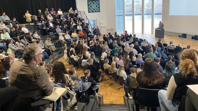 The vice-chancellor of the University of the Faroe Islands (Setrið) held a speech for new students yesterday. (Photo: Fróðskaparsetrið)