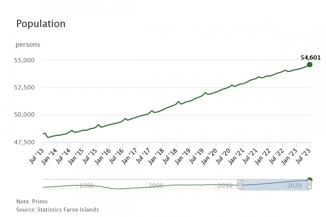 The Faroese population has grown to the highest level ever recorded, reports Statistics Faroe Islands.