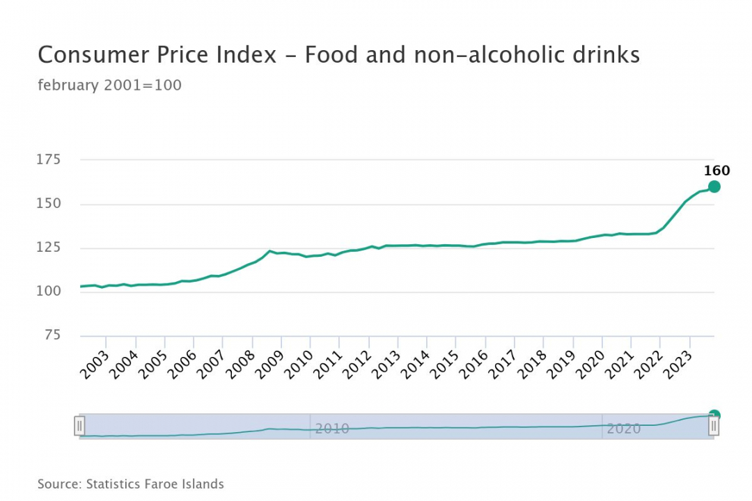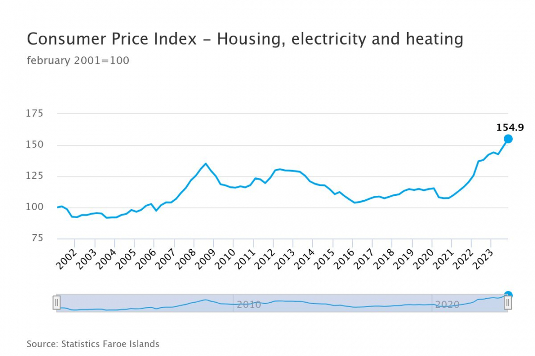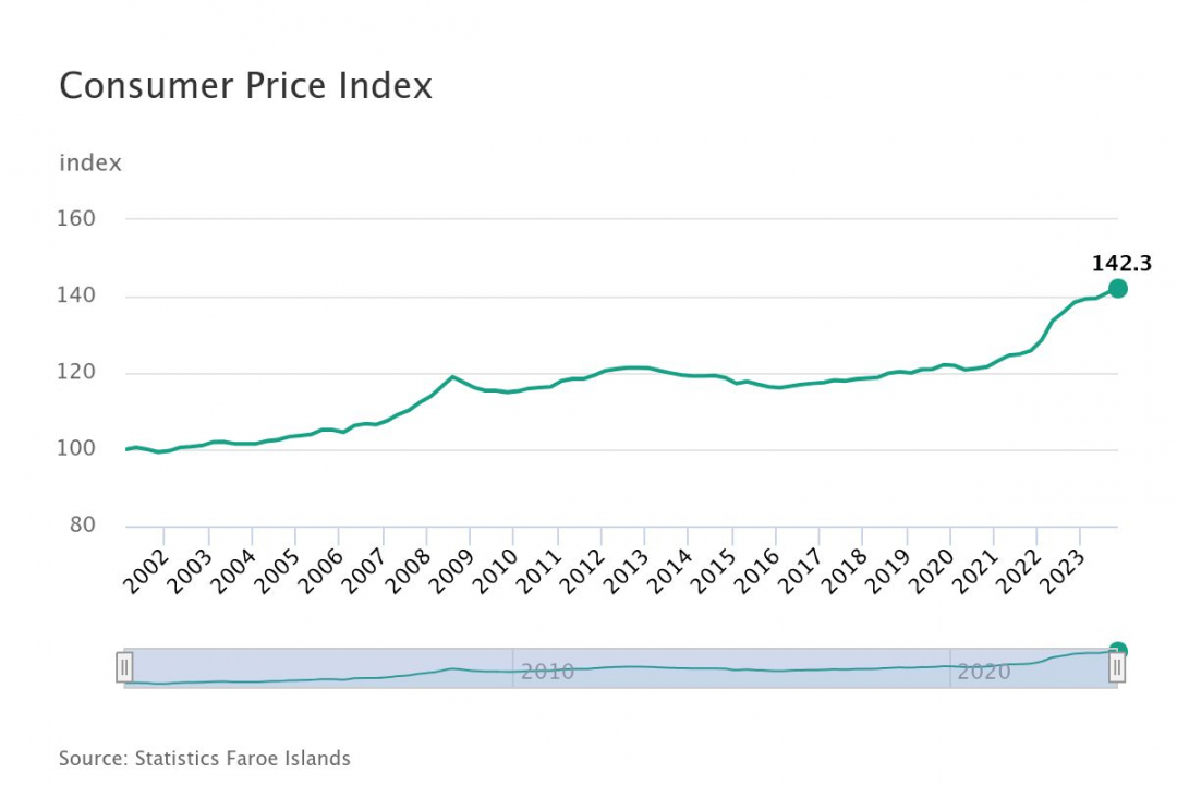 The annual price growth in the Faroes is slightly below the EU average of 3.1 percent.
