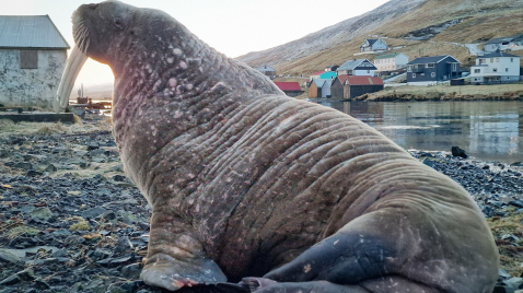 Náttúra Meðan grønlendingar fegnast um, at Fríðrikur kongur er komin á vitjan, so vakti tað ans í Vági, at ein stórur roysningur í morgun lá í fjøruni 18.02.2026 - 09:02 |