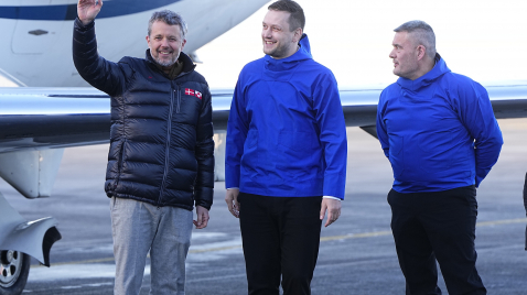 Útheimurin Jens-Frederik Nielsen, landsstýrisformaður, og Kim Kielsen, formaður í landstinginum, tóku ímóti á flogvøllinum í Nuuk 18.02.2026 - 14:15 |