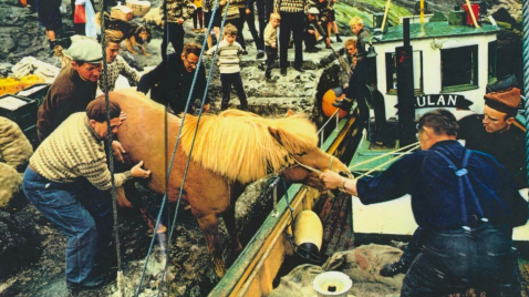 Mykinesryssan bleiv førd av oynni við báti fyri at bjarga føroyska rossinum