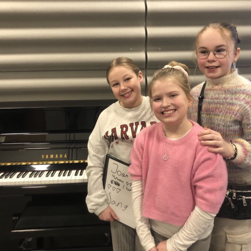 Joan, Kate og Meinhild ganga til sang í Nes sóknar musikkskúla hjá Katrin á Borg.